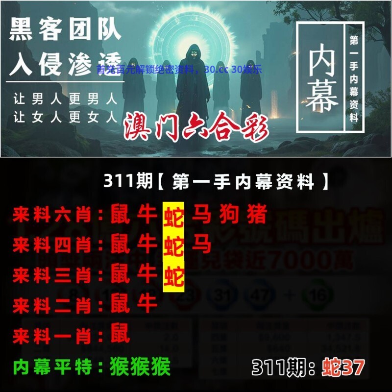 311期:绝杀三肖【兔牛猴】开:蛇37准